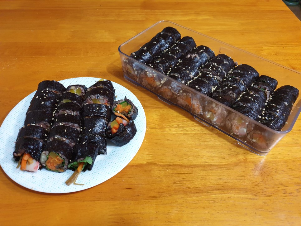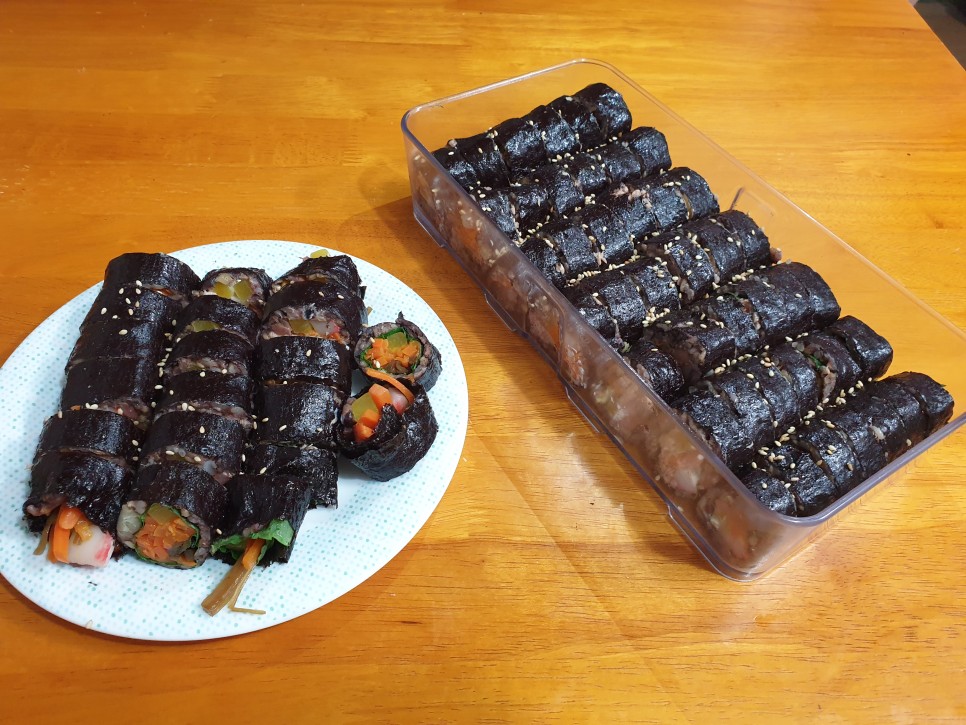 주말에 김밥을 만들면 며칠 자주 먹는다. 김밥을 좋아해서 김밥전문점에서 김밥을 몇 줄 사서 몇 줄 얼려서 먹고 싶을 때 김밥전을 만들어 먹기도 했는데 집 김밥은 아무리 몇 줄 만들어도 얼리기 전에 다 먹는다. 김밥전을 못 만드는 마성의 집 김밥.
