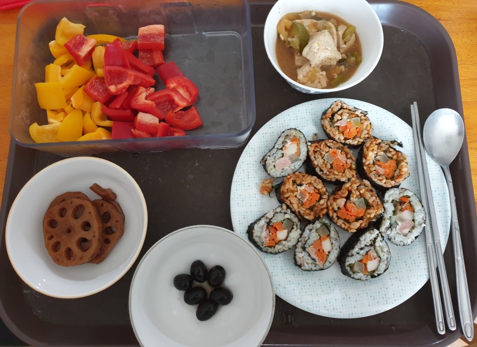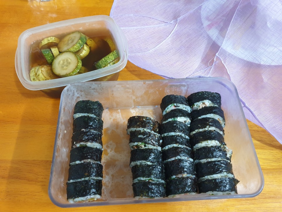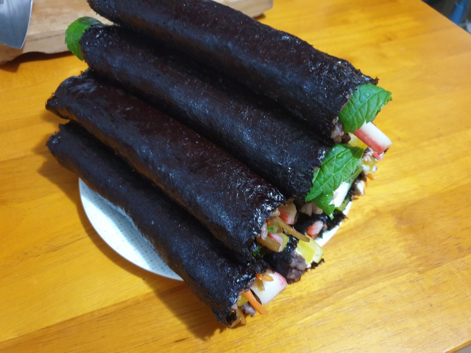 김밥을 좋아합니다. 그런데 김밥은 다이어트에도 좋은 음식이 아니라 그다지 건강한 음식이라는 느낌은 들지 않는 것이 사실입니다.김밥을 만들다 보면 생각보다 많이 들어가는 밥과 노랗고 새콤달콤한 단무지에는 단맛을 내기 위한 사카린 등 고소한 게맛에는 팽창제부터 합성보존료, 산화방지제 등. 그런데 이렇게 생각해보면 먹을 수 있는 게 거의 없어요. 그래서 그냥 먹어요. 하지만 집에서 만들어 먹는 만큼 조금이라도 맛있고 아주 조금이라도 몸에 부담없이 먹으려고 만드는 방법 몇 가지를 써봅니다.