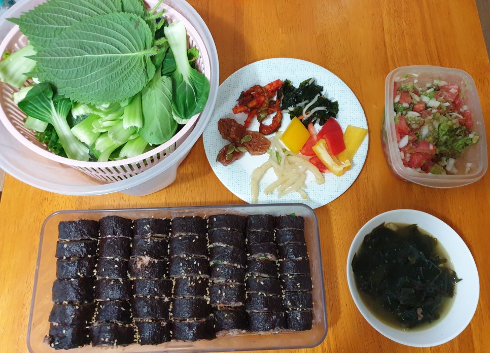 또 집에서 김밥을 만들면 재료의 한계 없이 점심을 먹고 남은 제육볶음도 넣고 가지볶음도 넣어 원하는 대로 넣어 만드는데 모두 맛있다.