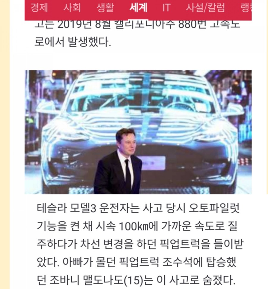테슬라 차량 교통사고로 15세 아들을 잃었다
