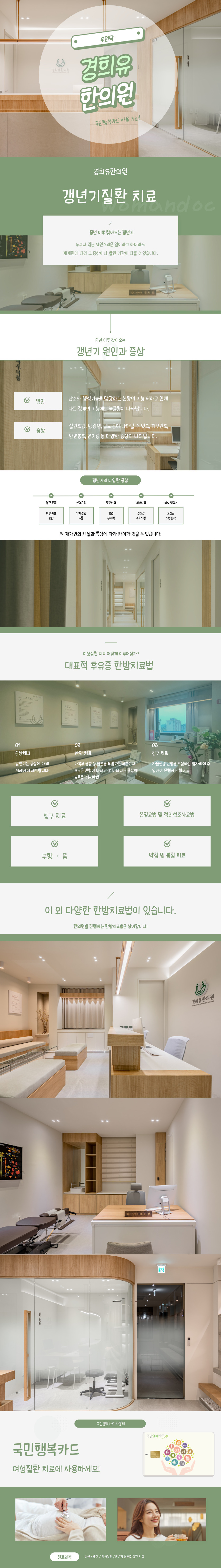 더 이상의 반응이 찾아올 때까지 아무런 장애 없이 건강한 시간을 보내셨더라도 노년기로 이어지는 이행기에 켜진 적신호를 제때 확인해 주지 않으면 그로 인해 받는 영향이 커지고 나아가 삶의 질을 떨어뜨릴 수도 있다는 점, 배제하지 않고 꾸준히 관심을 가져주실 것을 강남역 갱년기 한의원 처방 전부터 인지해주시기 바랍니다. 여성분들에게 나타나는 다양한 여성질환에 대해서도 강남역 갱년기 한방병원의 한방관리와 마찬가지로 각각의 상황에 맞는 세심한 과정을 지속하고 있으니 월경관련 질환은 물론 비뇨기계, 생식기계 이상반응, 그리고 임신과 출산관련 고민도 혼자 어렵고 힘들어하지 않아도 된다는 점 참고하시기 바랍니다.
