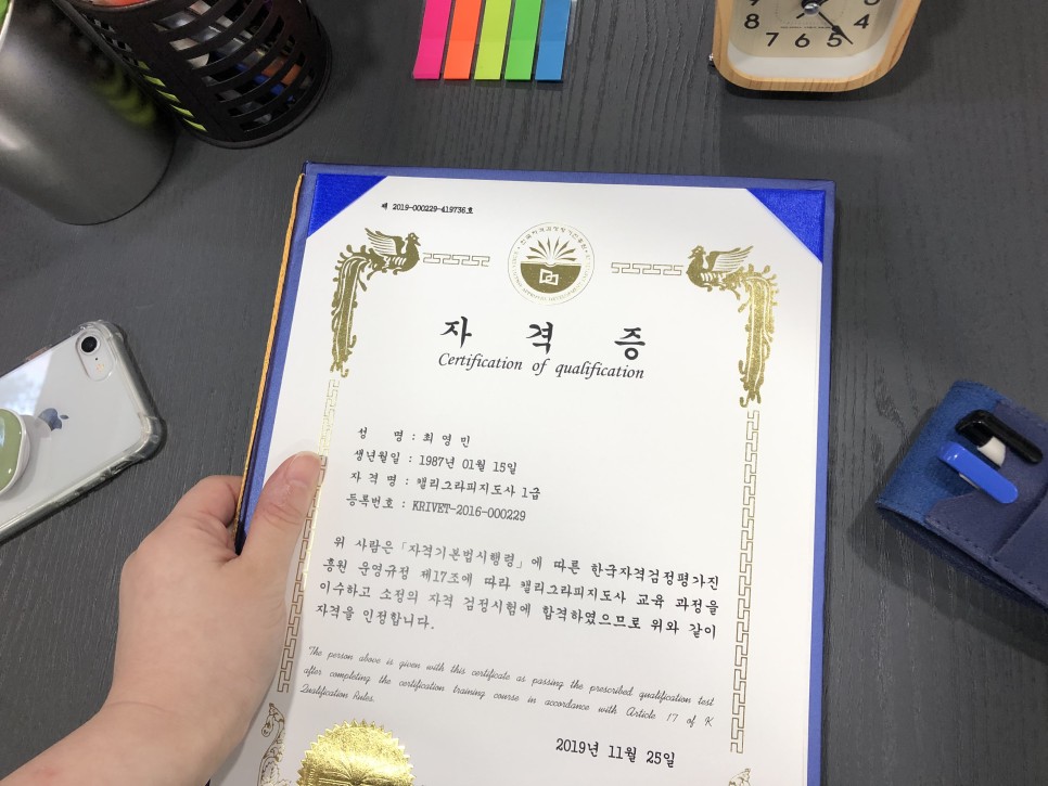 제가취득한캘리그라피자격증의경우활동할수있는분야는매우방대하니관심있는분들은한번쯤도전해보시기바랍니다.