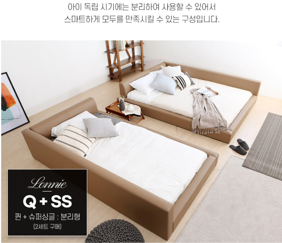 유아 독립시기에는 분리하여 사용할 수 있는 모듈형 스마트베드 퀸+슈퍼싱글 분리형 2세트