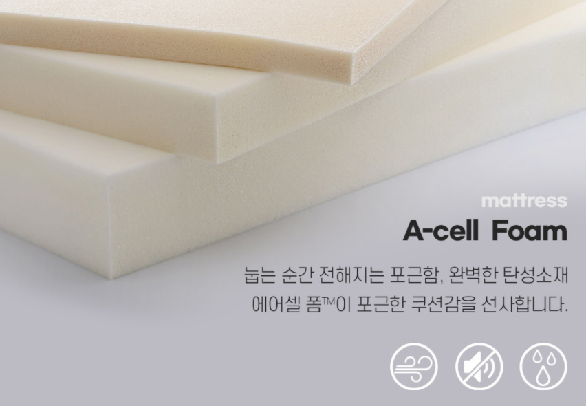 에어셀 폼에 누운 순간 전해지는 부드러움, 완벽한 탄성소재의 에어셀 폼이 폭신한 쿠션감을 줍니다.