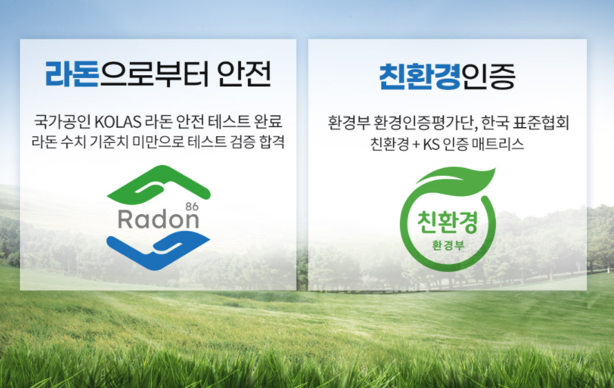 그리고 친환경 요소! 라돈에서 안전성 테스트 합격, 친환경 인증까지 받은 제품으로 더욱 추천드립니다!