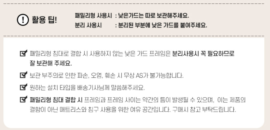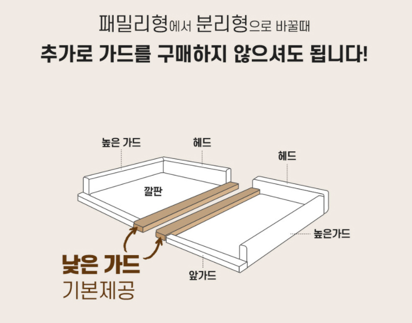 패밀리형에서 분리형으로 바꾸실 때 추가로 가드를 구입하지 않으셔도 됩니다.낮은 가드 기본 제공!