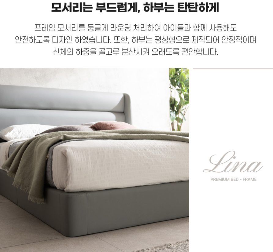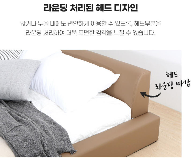 라운딩 처리된 헤드 디자인 앉거나 누울 때에도 편안하게 이용하실 수 있도록 헤드 부분을 라운드 처리하여 더욱 모던한 감각을 느끼실 수 있습니다.