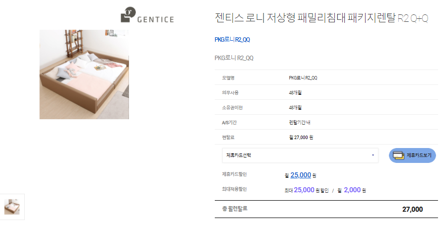 그런데, 제가 젠티스를 추천하는 이유는 그래도 합리적인 월 렌탈료와 제품이 좋아서 선택했습니다!