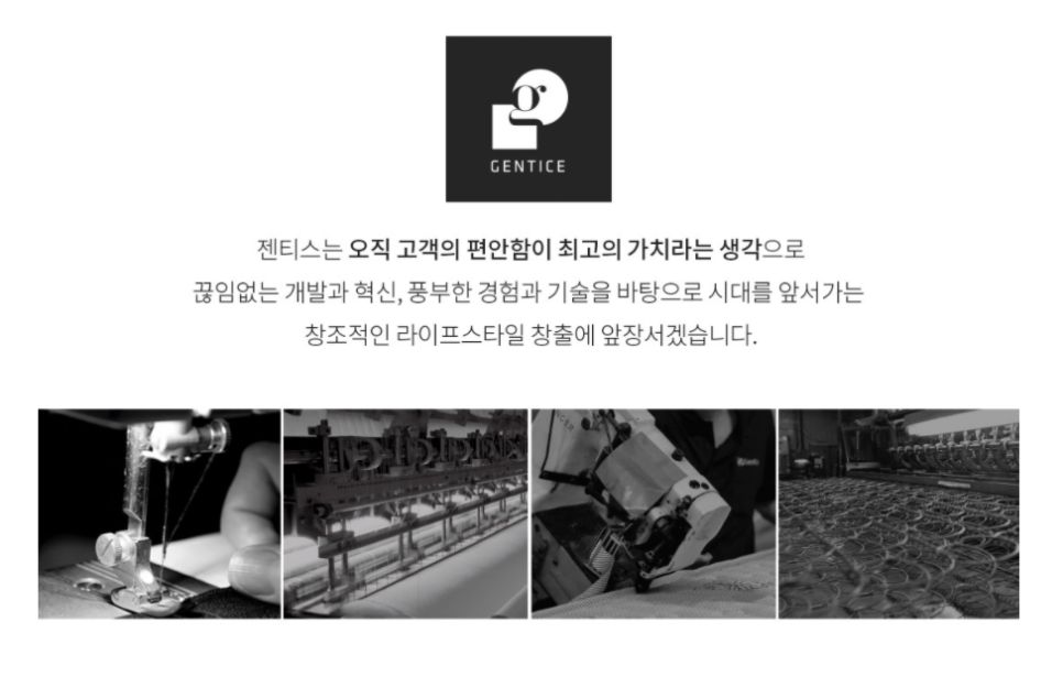 젠티스라는 브랜드에 대해서 먼저 알아보겠습니다!고객의 편안함이 최고의 가치라는 생각으로 끊임없는 개발과 혁신, 풍부한 경험과 기술을 바탕으로 시대를 선도하는 창조적인 라이프스타일 창출에 나서겠다는 포부!