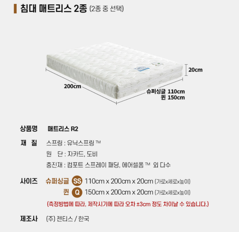 마찬가지로 리나베드도 매트리스까지 제공해드립니다.사진에는 오타가 있지만 로니와 함께 매트리스는 R2,R7입니다!