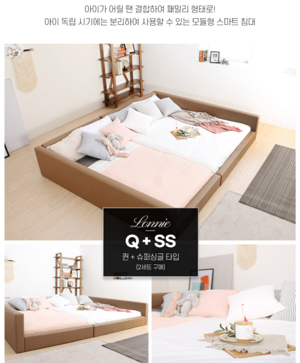 아이가 어릴 때는 결합해서 패밀리 형식으로!퀸+슈퍼싱글 2세트