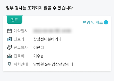 땡큐이비인후과 이은정 원장에게 진료를 받았고 초음파 형태를 보자마자 암이라고 생각하는 듯했다. 이날 중증 할인까지 바로 받았다.세침검사는 전혀 아프지 않았고 나눠준 종이에는 전화로도 결과를 들을 수 있다고 했지만 나는 무조건 와서 들어야 한다고 했다.분위기가 이미 암이었는데 지금까지는 설마 아니라고 생각했다.