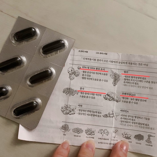 그런데 이런 복합적 관리의 중요성이 강조되면서 시중에 좋다라는 조합들이 굉장히 많이 나왔는데요, 불필요한 성분들도 들어있다고 저도 들은 적이 있습니다.그런데 여기에는 제 나름대로 고지혈증 약 성분을 관리하면서 공부할 때 알게 된 필수 성분들이 다 들어 있어서 받기로 마음을 굳힌 거죠.