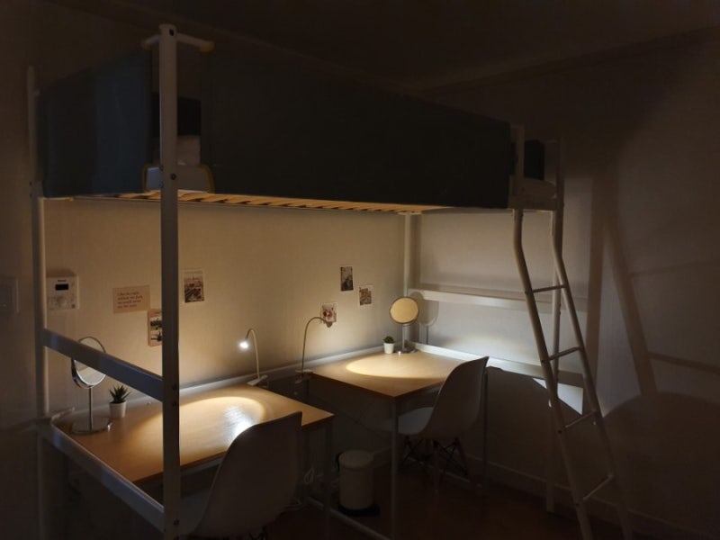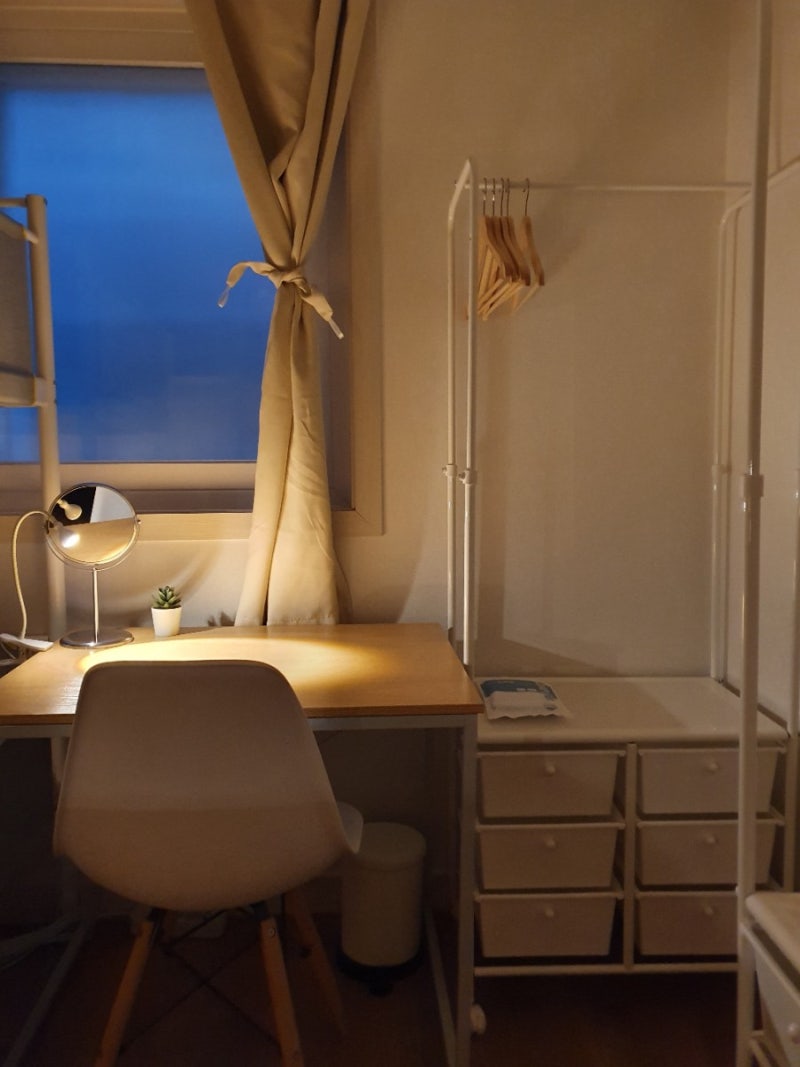 리하아스의 자랑, 매니저들이 가장 사랑하는 3인실 또 자랑하겠습니다. – 저렴한 월세로 자신만의 공간을 – 마음에 맞는 하메들과 사이좋게 – 4면이 다 막힌 침대에서 프라이빗하게 – 2월 오픈으로 가구가 다 예쁘게 – 각 방 개별 에어컨으로 눈치 보지 않고 여름 시원하게 – 의류 건조기로 하메들이 많아 세탁 걱정은 노노 말고도 자랑스러운 3인실이지만 사진으로 마무리합니다.