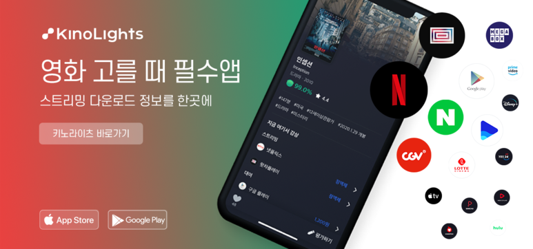 영화 평점을 넘어서 영화를 어떻게 볼 수 있는지 스트리밍과 다운로드 정보를 한눈에 확인할 수 있는 퀴노라이츠 앱입니다. 집에서 영화 보게 될 때 큰 도움이 될 것 같네요!