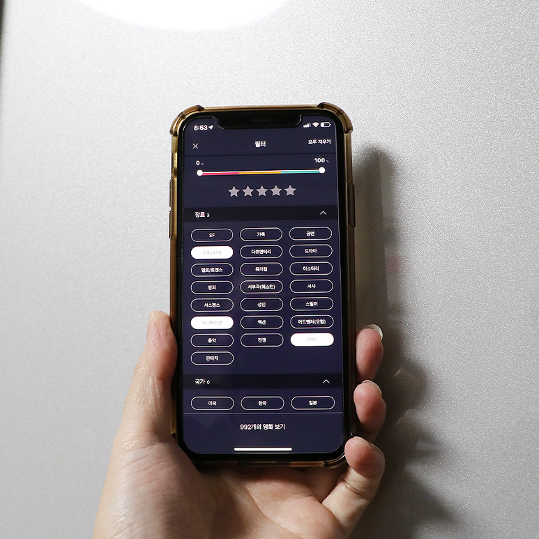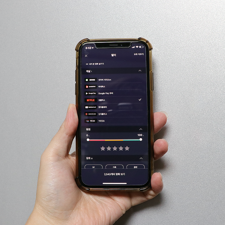 이중 필터를 열고 넷플릭스를 V 선택하면