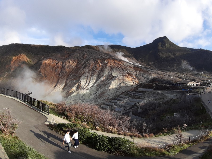 해발 1044미터의 하코네 화산의 이 연기와 냄새에서 생생한 화산 활동을 직접 느낄 수 있습니다.올해 초 오와쿠다니의 화산 활동이 위험 수위에 이르러 일시 폐쇄되었다는 뉴스가 나올 정도로 활동 중인 무서운 곳이지만, 이에 비해 다른 관광지와 마찬가지로 기념품 가게와 음식점은 사람들로 붐비고 있습니다.