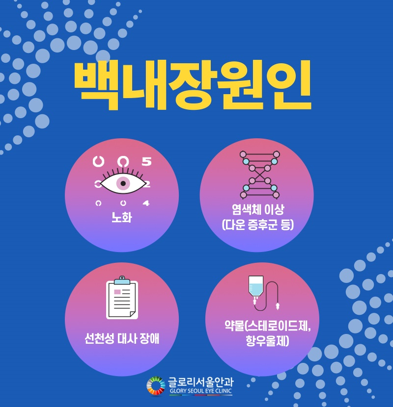 백내장은 선천적 혹은 후천적 요인에 의해 발생했습니다.백내장이 되는 이유 중 노화가 높은 비율을 차지하고 있기 때문에 젊은 사람들은 제게는 해당사항이 없다고 생각하고 별로 신경 쓰지 않기도 했습니다. 그러나 가족 중 백내장의 경험이 있는 경우 발병률이 더 올라갈 수 있으며, 그 외에도 당뇨 합병증의 일환으로 백내장이 발생하거나 강한 자외선, 안내질환, 외상 등도 이유가 될 수 있었습니다.