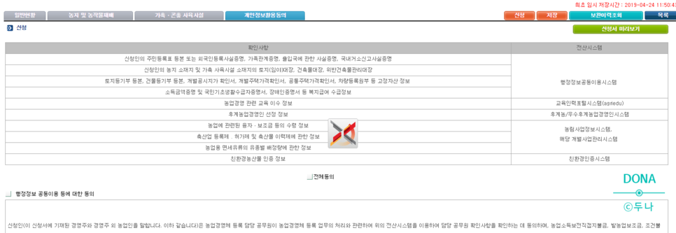 까보면 이렇게 개인정보 활용 동의까지 나오는데 (나는 가축 곤충이 없어서 없다고 체크해서 날릴 수 있다) 무한로딩이 빠져서 그냥 새로고침해서 다시 들어왔다