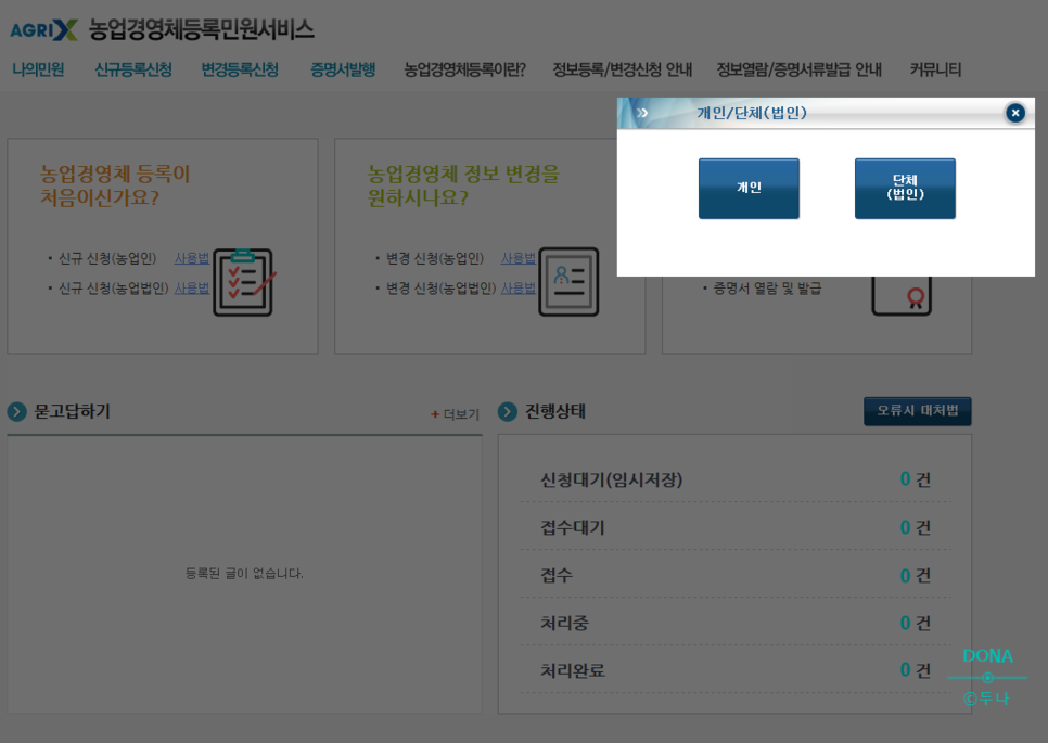 인증 후 자신이 개인지 단체인지 선택한다.저는 개인이니까 개인 선택