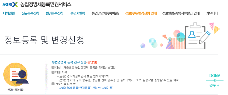 사족이 길었지만 인터넷으로 농업경영인 등록을 하려면 관련 서류가 필요하다.나머지는 간단하게 신상이나 농작물 정보를 입력하면 된다.소요시간은 10분도 걸리지 않는다.