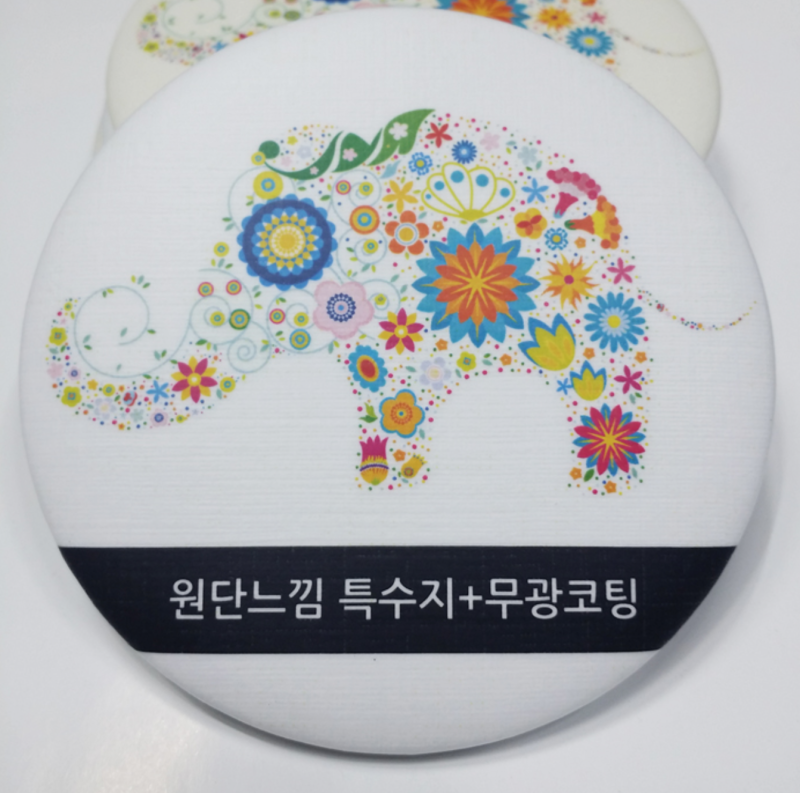 오늘 소개해드릴 원형 손거울 제작은 레자크 원단을 사용하여 빛이 반사되지 않는 무광 디자인입니다. 번들거리지 않아 은은한 고급스러움을 자아냅니다.
