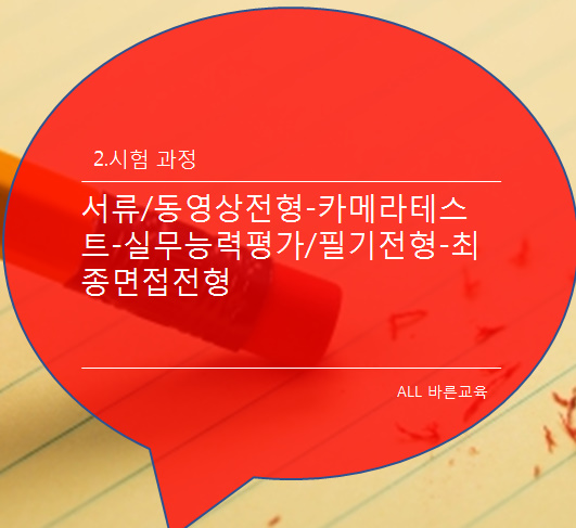 카메라 테스트 후 실무능력평가와 필기전형을 치르게 되며 최종 면접 전형으로 진행됩니다.