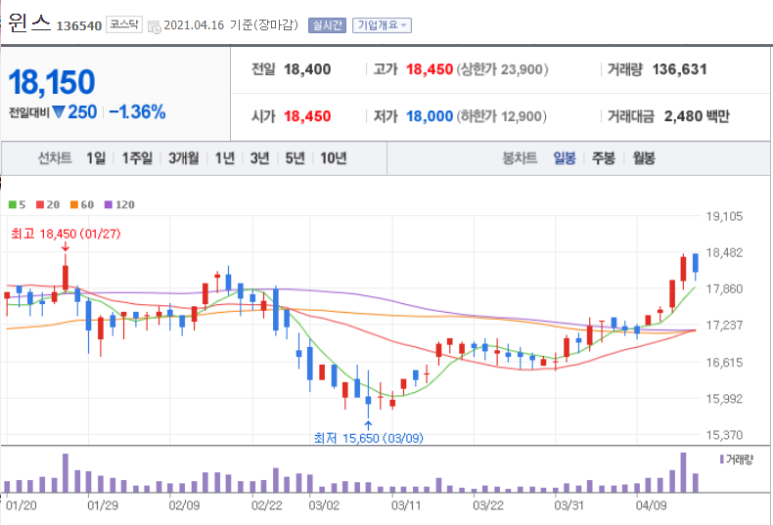 김대용 윈즈 대표가 김부겸 총리와 경북고 동문이어서 수혜주로 불립니다.