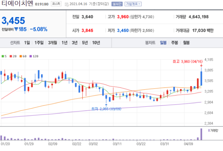 티에이치엔의 경우 명예회장이 김부겸 의원과 동문이어서 김부겸 관련주로 분류됐습니다. “실제로 1942년생인 채철 명예회장은 김부겸 총리와 경북고등학교, 서울대학교 동문으로 알려져 있습니다”