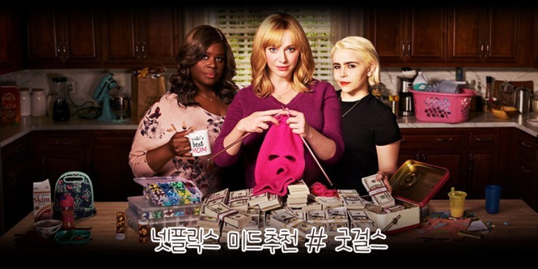 중년 여성 3인방이 주인공을 맡은 범죄 코미디로 현재 시즌 3까지 나오고 있습니다.4남매를 키우는 전업주부 베스(가운데) 남편은 중고차 사장이지만 매번 적자로 빚만 불어나는 형편, 알고 보니 남편은 직장여직원과 바람만 피우다가 들켰어요.어릴 적 과속으로 임신, 남편과 이혼한 뒤 혼자 아이를 키우는 미혼모 애니(오른쪽)마트에서 캐셔로 일하며 딸과 근근이 살고 있는데 남편이 양육권 소송을 제기하는 바람에 목돈이 필요해진 상황입니다.남편은 경찰이고 아들 하나, 딸 하나 키우는 겉보기에는 별것 아닌 것 같은 루비(왼쪽)지만 루비의 딸은 병에 걸려 막대한 치료비가 필요합니다.베스, 루비, 애니는 각자의 경제적인 문제에서 단합을 도모합니다.급하게 돈을 마련하기 위해 세 사람은 강도를 가장해 애니가 일하고 있는 마트를 덮치게 됩니다.다행이랄까… 아무튼 강도 성공합니다동네 슈퍼치고는 놀랄 만큼 많은 돈이 금고 안에 들어 있었습니다.알고 보니 그 마트는 갱단과 협업을 하는 곳이었어요.세 여자가 돈을 훔쳤다는 사실을 안 갱단의 우두머리 리오는 세 여자를 찾아가 돈을 내놓으라고 협박합니다.하지만 이미 돈을 써버렸기 때문에 돌려주는 대신 리오의 지시대로 위조지폐를 공수해오는 범죄를 저지르게 됩니다.생각보다 쉽게 목돈을 벌 수 있는 루트를 알게 된 이들은 점점 더 느긋해집니다.돈을 다 갚은 후에도 스스로 리오를 찾아가서 일을 요구하게 되요.보면 볼수록 굿걸스라는 타이틀에서 점점 멀어져가는 그녀들의 모습을 볼 수 있다고 생각합니다;;; 근데 재밌어요!