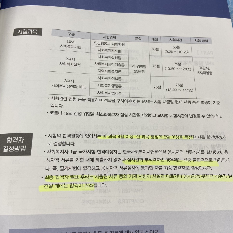 시험에 대한 과목을 균형있게 따면서 공부를 해나가야 했기 때문에 기본적으로 사회복지사 1급 과목에 맞는 시험의 합격 포인트를 따는 것이 중요하다고 생각했습니다.