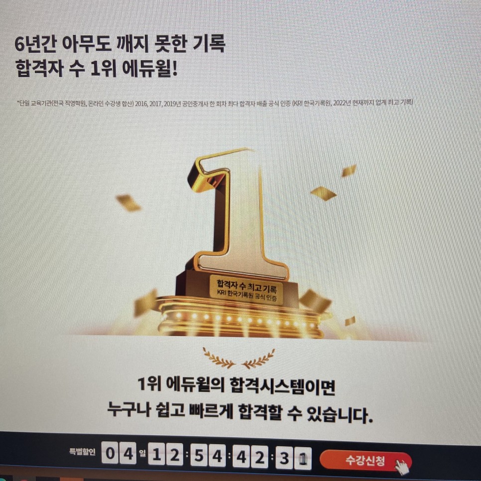 에듀윌 합격 시스템의 경우는 고득점을 위한 6회 독해 과정과 학습 계획을 균형 있게 파악할 수 있는 과정으로 사회복지사 1급 자격증 과정이 진행되었습니다.