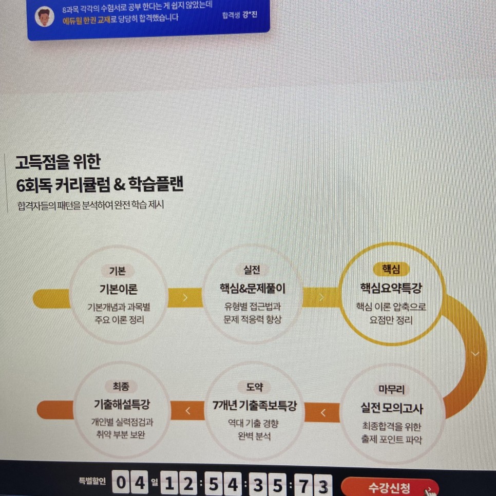 쉽고 빠르게 학습할 수 있도록 Edu/Will 강의로 기본적인 틀이 갖추어지기도 했지만 아무래도 상세하게 적용할 수 있도록 구성된 고득점 커리큘럼이 실제로 저에게 올바른 학습 방향으로 가이드되어 편안하게 점수 향상에 대한 구체적인 솔루션이 되었습니다.