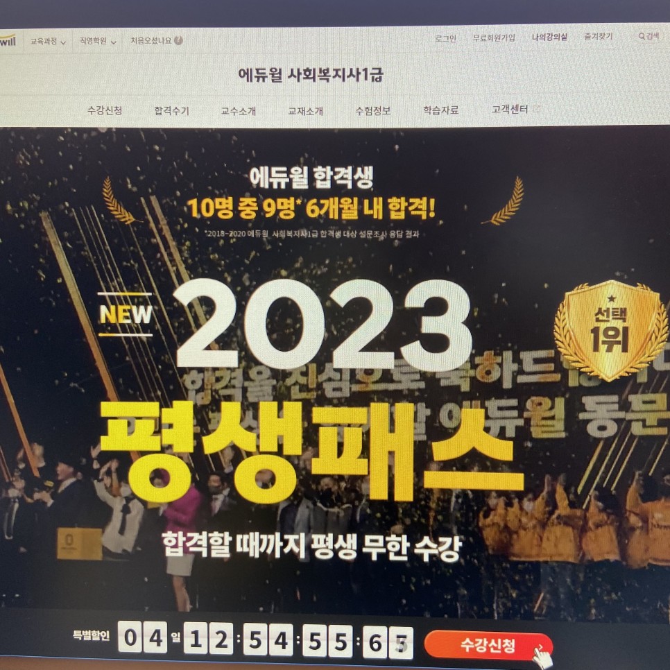 사회복지사 1급 시험 기출 문제와 함께 에듀윌 사회복지사 1급 인터넷 강의를 함께 적극 활용해 보았습니다. 도움이 된 강의 중 하나로는 2023 평생 패스 강좌를 함께 수강하면서 공략해 봤습니다. 학습자를 위해 제공되는 프리미엄 혜택이 워낙 많아서인지 합격할 때까지 무제한 수강할 수 있다는 점이 장점이 됐습니다.