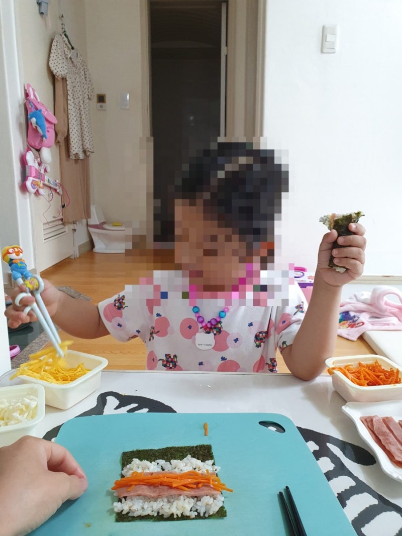 1개, 2개 입안에 쏙쏙 김밥재료 김 3장 밥 3공기 우엉, 단무지, 당근 참기름, 후리카케