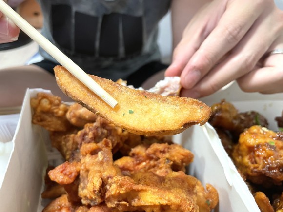 동시에 치킨 사이사이에 웨지 포테이토가 같이 들어가 있어서 그런지 이게 또 묘미였던 것도 있더라고요