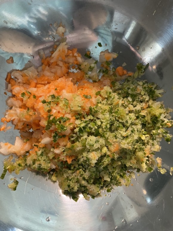 다진 야채에 새우젓을 넣어 통통하게 땡땡이쳤다.