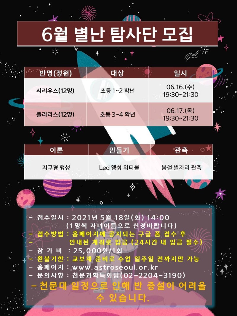 동대문구의 지원을 받아 설치·운영하기 때문에 동대문구 주민과 초·중·고등학생도 #천문대 체험을 할 수 있는 프로그램이 있으나 학부모님과 함께하는 초등천문아카데미는 학교에서 안내를 받으면 신청할 수 있습니다.^^