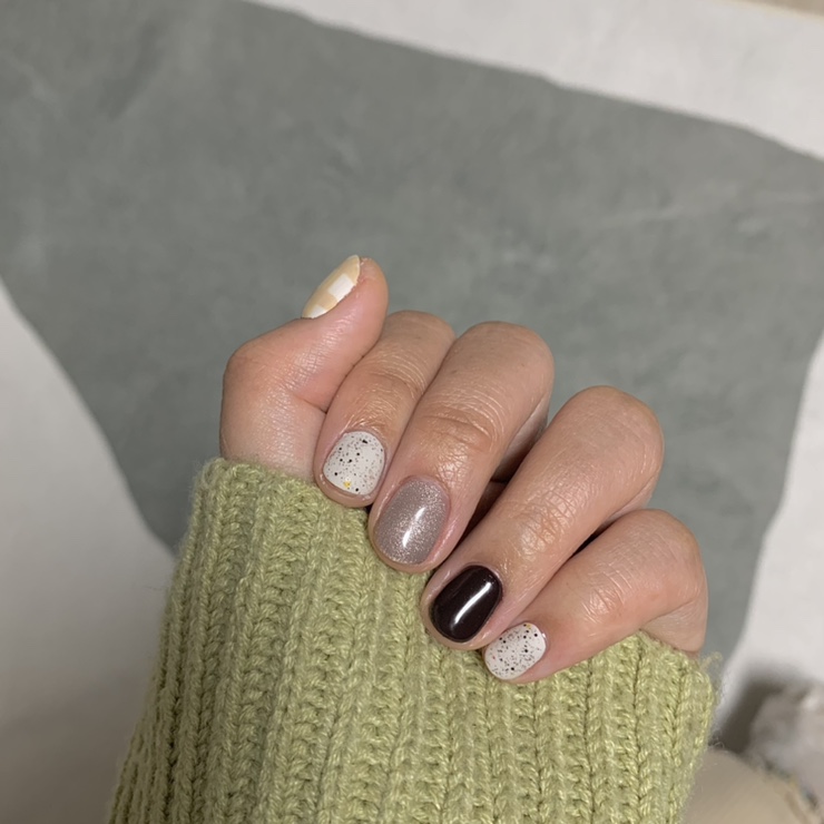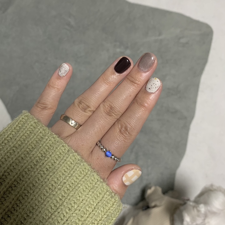 젤 네일을 바꿨는데 멀리서 보면 예쁜 네일 나름대로 유행하는 귀신 네일, 쿠엔쿠네일을 다 가져왔어.이거예요.