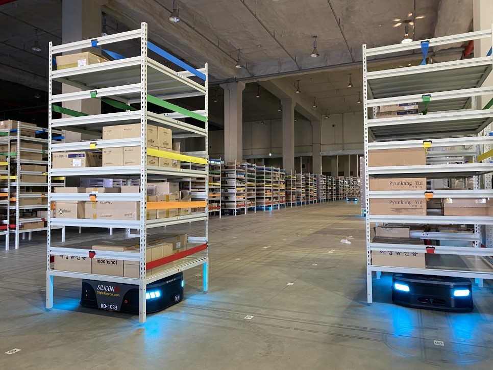 이 유통사는 상반기부터 계속된 해외 물량 급증으로 올 9월 경기 광주에 있는 물류센터를 2배 추가 확충하고, 2배로 늘어난 새로운 물류센터에서 99대의 AGV를 도입하겠다고 밝혔다. 이번 도입된 AGV는 중국 물류 창고 로봇 기업 「무샤이니」(MUSHINY, 목성 지능) 제품으로 알려졌다.