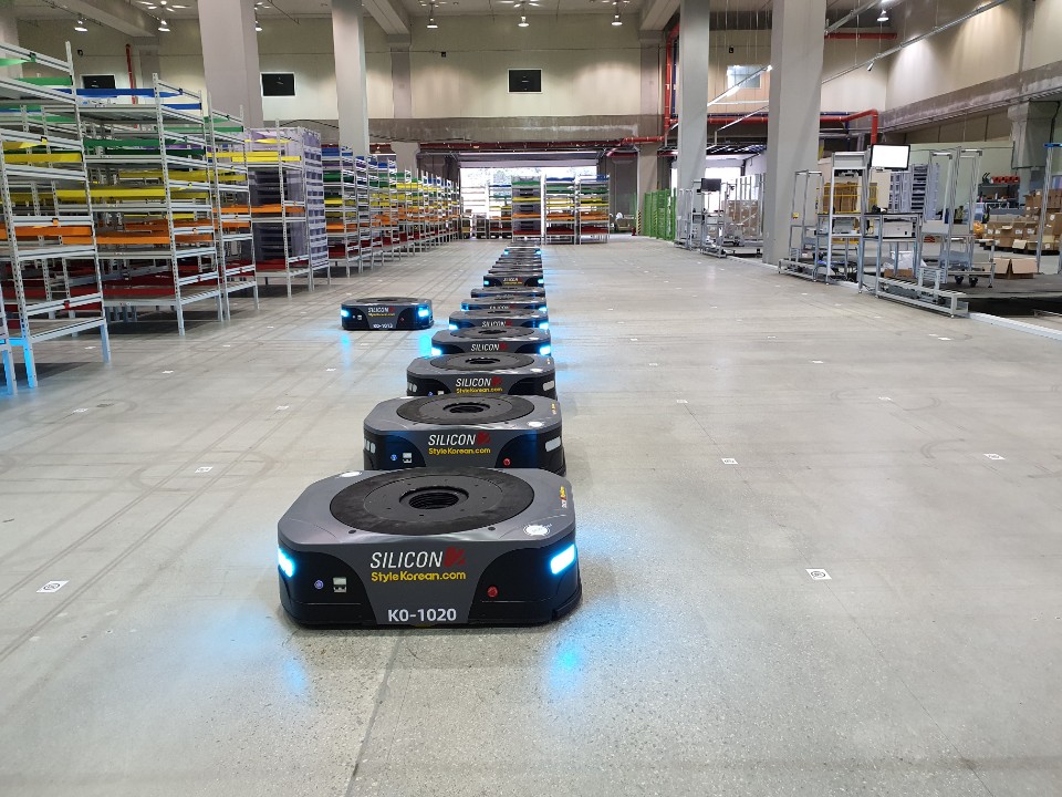로봇 AGV 도입. ●스마트한 사업 기대 … 실리콘투, 10월 물류용 무인자율주행
