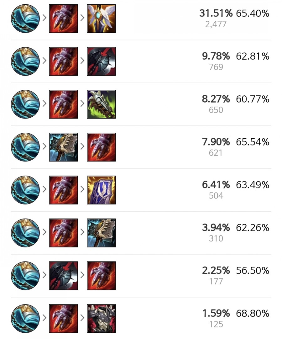 라인에 관계없이 녹턴의 경우 신화 아이템은 풋 분쇄기를 올려주세요.이 다음 아이템으로는 스텔락의 도전, 선체 파괴자, 가시 갑옷 등을 상황에 맞게 올려 주시면 감사하겠습니다.장인은 주로 발분 이후에는 스티커를 올려요.