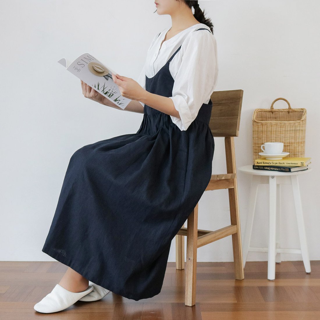 홈 인테리어에 잘 어울리는 린네르 원피스의 침실에서 거실에서 혼자서도 우아함을 놓치지 않고 인테리어도 깨지 않는 스타일의 스튜디오 촬영을 하고 보면 어느 정도 실용적인지를 더 느끼게 되었습니다. 키가 낮은 경우는 총 길이를 좀 더 짧게 제작을 부탁하고, 허리선을 올리는 정도는 쉽게 수정하고 제작하고 있습니다. 가끔 타사의 사진을 들고 만들어 달라는 손님이 옵니다만, 폐사는 우리만의 스타일로 제작하고 있으며 사이즈 조절과 색깔이 다양한 점이 장점으로 우리의 공방을 찾고 있는 것 같습니다. 52000원으로 높다고 생각하면 가격과 스타일이 맞는 쇼핑몰을 찾으면 좋겠어요. 폐사의 공방에서는 소재의 단가가 작게는 7000원에서 1만원대의 소재를 사용하기 때문에 완성품의 가격이 1만원대의 에이프런은 폐사의 단가가 맞지 않아 제작할 수 없습니다. 가끔 특가로 제작되는 1만원대의 에이프런은 소재를 부드럽게 구입한 경우이므로, 그만큼 마진율이 작아도 백번 양보하도록 제작하고 있습니다.