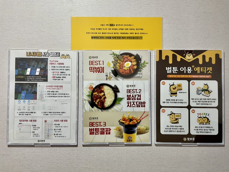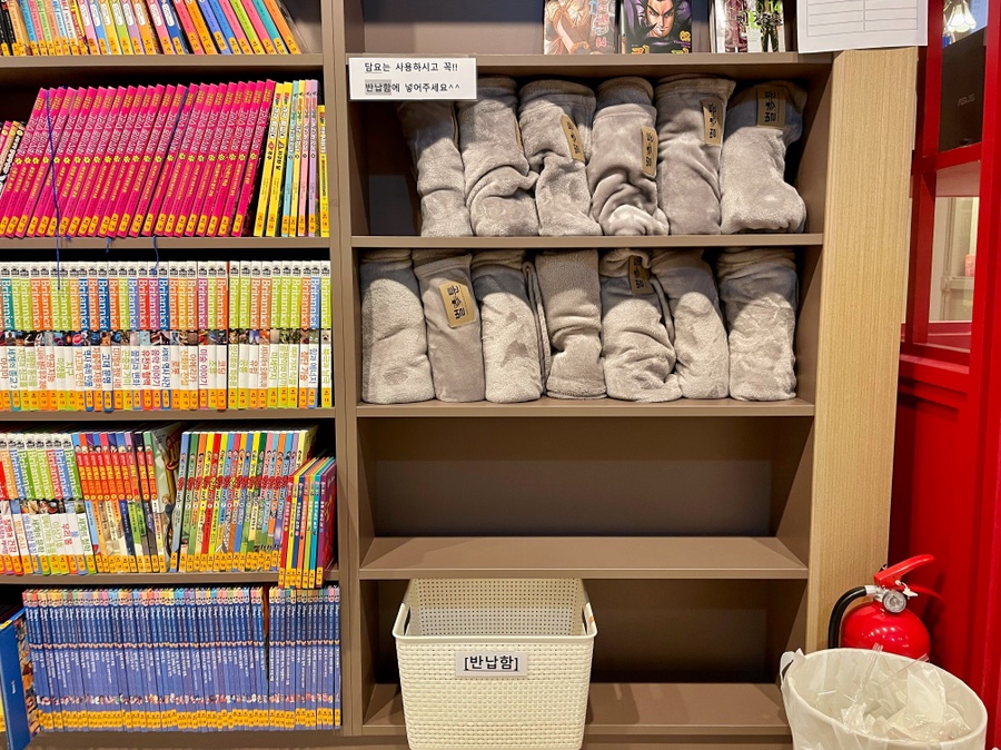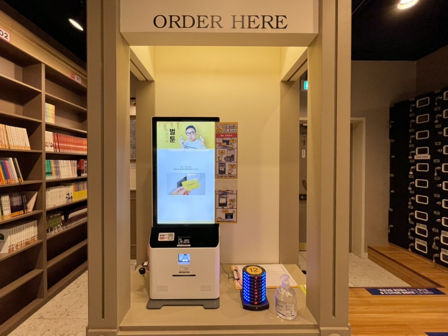 사람이 많을 때는 카운터도 정신이 없어서인지(?) 키오스크도 있었어요!물론 만화방에 자주 오는 연령층이 젊기 때문에 잘 다룰 수 있다고 생각합니다만, 키오스크 화면 옆에는 사용법도 쉽게 붙어 있기 때문에 걱정할 필요가 없습니다.^^
