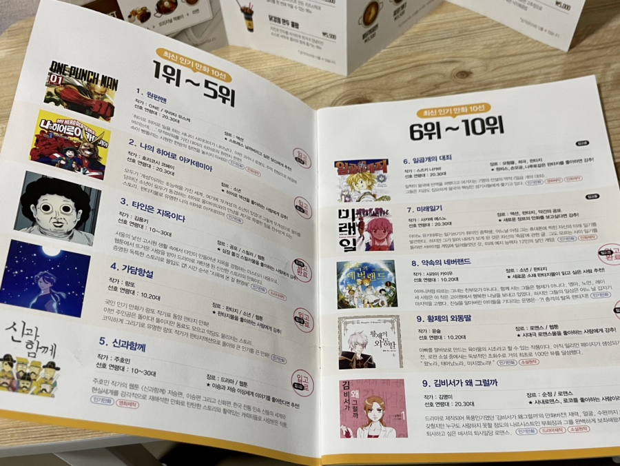 이게 벌툰 전용 가이드북!추천마다 만화책 랭킹과 보드게임 랭킹이 있기 때문에, 선택 장애가 있는 분에게는 꽤 편리^^