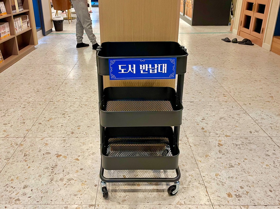 도서 반납은 제자리에 놔두는 게 아니라 여기 놔두면 직원분이 알아서 정리해 주시죠:)