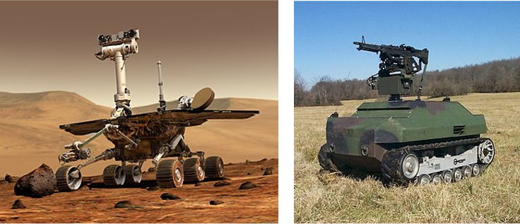 < UnManned Vehicle 예 – 불 별 탐사로버와 글래디에이터 전략 UGV, 출처 : Wikipedia > “스마트 카(Smart Car)”는 차량에 전기, 전자, 통신 등 ICT 기술을 융합하여 고도의 안전과 편리성을 제공하여 붙여진 이름으로, 전장부품의 비중이 과거보다 높아지고 다양한 마이크로 컨트롤러가 사용되었으며, 다양한 마이크로 컨트롤러가 사용되었다.