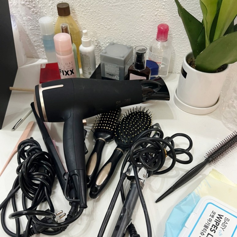 드라이기, 고데기, 아이롱이 스튜디오에 비치되어 있어 무겁게 들 필요가 없어 너무 좋았어요.작가님 센스 짱…