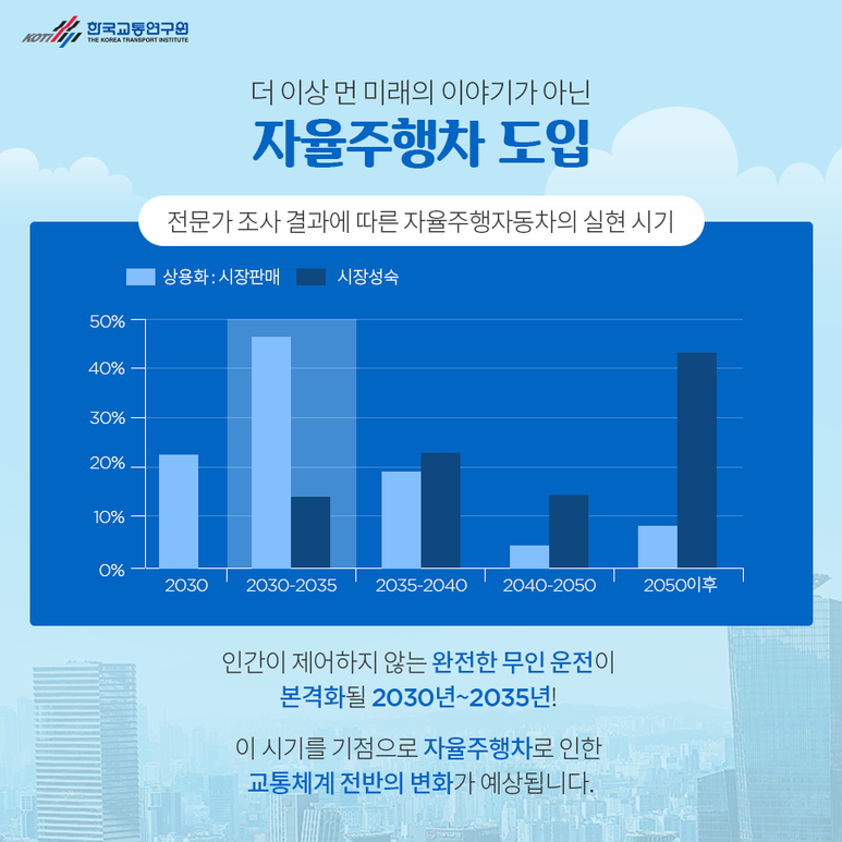 더 이상 먼 훗날이 아니라 자율주행차 도입 인간이 제어하지 않는 완전한 무인운전이 본격화되는 20302035년을 기점으로 교통시스템 전반의 변화가 예상된다.