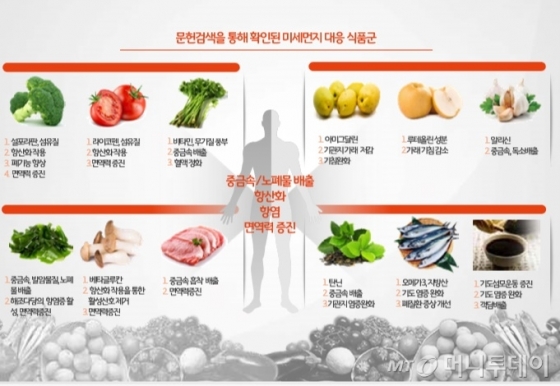 해독에는 미나리.알칼리성 식품인 미나리는 비타민, 식이섬유, 무기질을 풍부하게 가지고 있어 혈액을 맑게 하고 해독작용을 합니다.더워서 중금속 배출 효과가 뛰어난 것으로 알려져 있습니다.게다가 현대인의 지친 간 기능을 향상시키고 체내 콜레스테롤 수치까지 낮출 수 있기 때문에 평소에 자주 먹어도 되는 식품입니다.하지만 소화기가 약한 사람은 익혀서 섭취하는 것이 좋습니다.알칼리성 식품인 미나리는 비타민, 식이섬유, 무기질을 풍부하게 가지고 있어 혈액을 맑게 하고 해독작용을 합니다.더워서 중금속 배출 효과가 뛰어난 것으로 알려져 있습니다.게다가 현대인의 지친 간 기능을 향상시키고 체내 콜레스테롤 수치까지 낮출 수 있기 때문에 평소에 자주 먹어도 되는 식품입니다.하지만 소화기가 약한 사람은 익혀서 섭취하는 것이 좋습니다.오메가3 대표주차, 고등어등푸른 생선의 대표주자인 고등어도 미세먼지 배출에 도움이 되는 음식으로 꼽힙니다.바로 #오메가3 지방산 때문입니다.형액을 깨끗하게 해줄 뿐만 아니라 호흡곤란 개선에도 도움이 됩니다.기도 자체의 염증은 완화시키는 효능도 있습니다.하지만 무엇이든 지나간다!오메가3 지방산 과다 섭취는 뇌졸중 위험이 높기 때문에 주의가 필요합니다.등푸른 생선의 대표주자인 고등어도 미세먼지 배출에 도움이 되는 음식으로 꼽힙니다.바로 #오메가3 지방산 때문입니다.형액을 깨끗하게 해줄 뿐만 아니라 호흡곤란 개선에도 도움이 됩니다.기도 자체의 염증은 완화시키는 효능도 있습니다.하지만 무엇이든 지나간다!오메가3 지방산 과다 섭취는 뇌졸중 위험이 높기 때문에 주의가 필요합니다.항염효과, 마늘재배 방법이 어려웠다면 인삼만큼이나 비쌌을 것이라는 얘기가 나올 정도로 효능이 있는 마늘은 기관지에도 도움이 됩니다.마늘 속 알리신과 비타민 B1의 항염 작용이 기관지 염증을 개선시키기 때문입니다.이 알리신은 잘게 부수어 먹는 것이 효과가 높기 때문에 오래 씹어 먹거나 얌전히 넣는 것이 좋습니다.대부분의 마늘은 돼지고기와 함께 먹는 경우가 많은데 이런 육류의 지방 유해물질이 체내 흡수율을 높이기 때문에 마늘만 섭취하는 것이 좋습니다.재배 방법이 어려웠다면 인삼만큼이나 비쌌을 것이라는 얘기가 나올 정도로 효능이 있는 마늘은 기관지에도 도움이 됩니다.마늘 속 알리신과 비타민 B1의 항염 작용이 기관지 염증을 개선시키기 때문입니다.이 알리신은 잘게 부수어 먹는 것이 효과가 높기 때문에 오래 씹어 먹거나 얌전히 넣는 것이 좋습니다.대부분의 마늘은 돼지고기와 함께 먹는 경우가 많은데 이런 육류의 지방 유해물질이 체내 흡수율을 높이기 때문에 마늘만 섭취하는 것이 좋습니다.배출의 기본, 물미세먼지가 많은 날에는 물을 자주 마시는 게 좋다는 거 다들 아시죠?체내에 쌓인 미세먼지를 씻어내고 소변으로 배출할 수 있도록 도와줍니다.이렇게 물을 자주 마시면 기관지 점막이 과도하게 마르는 것을 예방 습도를 유지시켜 줍니다.궁극적으로는 면역력을 높이는 데도 도움이 됩니다.봄과 함께 찾아온 미세먼지, 불가피한 경우 피해는 최소화해야 하는 것! 무심코 조금씩 쌓이는 미세먼지 중금속과 조금씩 생기는 염증 예방을 위해 음식부터 신경 써야 합니다.배출의 기본인 물을 자주 마셔 염증을 완화시키는 마늘과 배, 중금속 흡수를 막는 녹차, 혈액을 맑게 해주는 미나리와 미역, 고등어, 폐 기능을 향상시키는 브로콜리 등 미세먼지가 심한 날에는 식탁 위에서 조금씩 바꿔보세요.봄과 함께 찾아온 미세먼지, 불가피한 경우 피해는 최소화해야 하는 것! 무심코 조금씩 쌓이는 미세먼지 중금속과 조금씩 생기는 염증 예방을 위해 음식부터 신경 써야 합니다.배출의 기본인 물을 자주 마셔 염증을 완화시키는 마늘과 배, 중금속 흡수를 막는 녹차, 혈액을 맑게 해주는 미나리와 미역, 고등어, 폐 기능을 향상시키는 브로콜리 등 미세먼지가 심한 날에는 식탁 위에서 조금씩 바꿔보세요.봄과 함께 찾아온 미세먼지, 불가피한 경우 피해는 최소화해야 하는 것! 무심코 조금씩 쌓이는 미세먼지 중금속과 조금씩 생기는 염증 예방을 위해 음식부터 신경 써야 합니다.배출의 기본인 물을 자주 마셔 염증을 완화시키는 마늘과 배, 중금속 흡수를 막는 녹차, 혈액을 맑게 해주는 미나리와 미역, 고등어, 폐 기능을 향상시키는 브로콜리 등 미세먼지가 심한 날에는 식탁 위에서 조금씩 바꿔보세요.